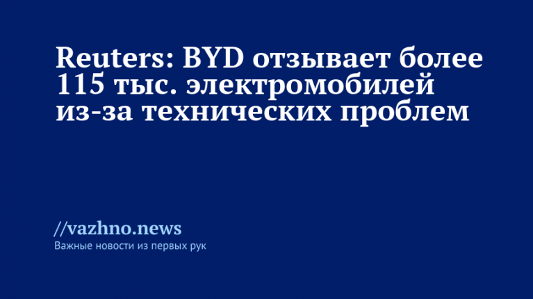 Китайская компания BYD объявила о массовом отзыве более 115 тыс. электромобилей моделей Tang и Yuan Pro из-за выявленных проблем с аккумуляторными батареями, сообщает 17 октября агентство Reuters.