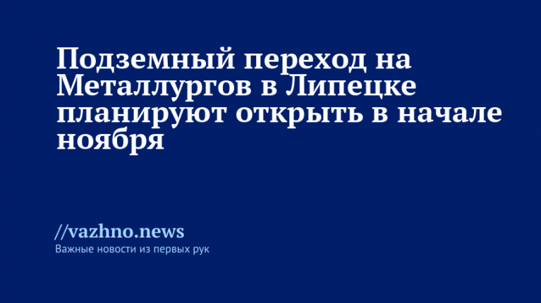 В Липецке в начале ноября собираются открыть после капитального ремонта подземный переход, расположенный на улице Металлургов. Глава города Роман Ченцов сообщил об этом в своем Telegram-канале.