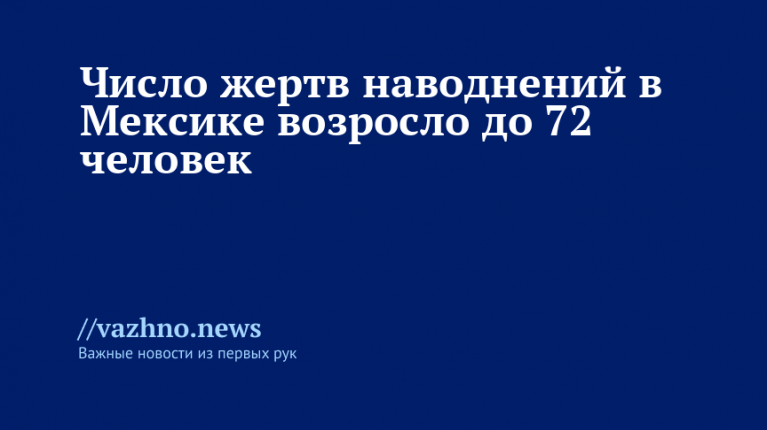 Мощные ливни и вызванные ими наводнения в Мексике привели к гибели 72 человек, при этом 48 жителей считаются пропавшими без вести. Об этом 17 октября сообщили на государственном портале, посвященном мониторингу последствий стихийного бедствия.