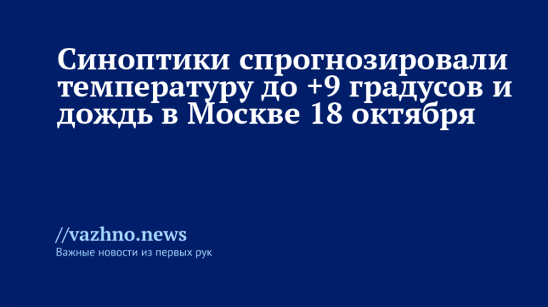 В субботу, 18 октября, жителей столичного региона ожидает облачная погода с небольшими, местами умеренными дождями. Такой прогноз опубликован на официальном сайте Гидрометцентра.