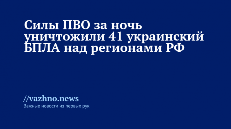«В течение прошедшей ночи дежурными средствами ПВО были уничтожены 41 украинский БПЛА самолетного типа», — говорится в сообщении в Telegram-канале ведомства.