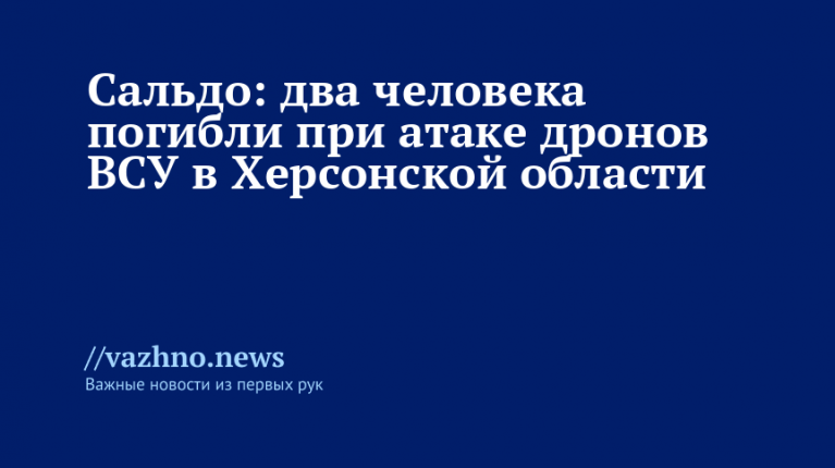 В результате нападения дронов Вооруженных сил Украины (ВСУ) в Херсонской области погибли двое человек. Об этом 18 октября сообщил глава региона Владимир Сальдо.
