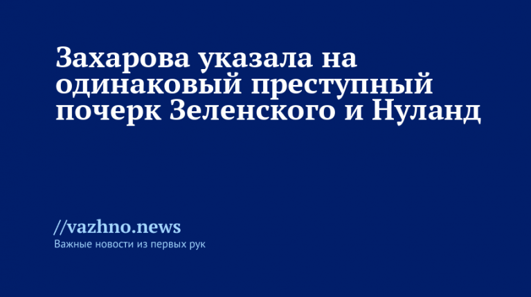 Официальный представитель министерства иностранных дел России Мария Захарова в субботу, 18 октября, провела аналогию между президентом Украины Владимиром Зеленским и экс-заместителем госсекретаря США Викторией Нуланд, отметив, что у них «один преступный почерк».