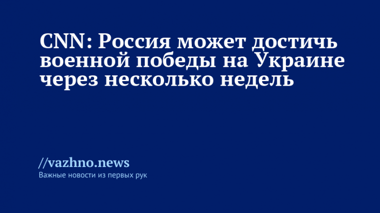 Россия способна одержать победу в конфликте на Украине уже в ближайшие недели. Об этом 18 октября заявляет телеканал CNN.