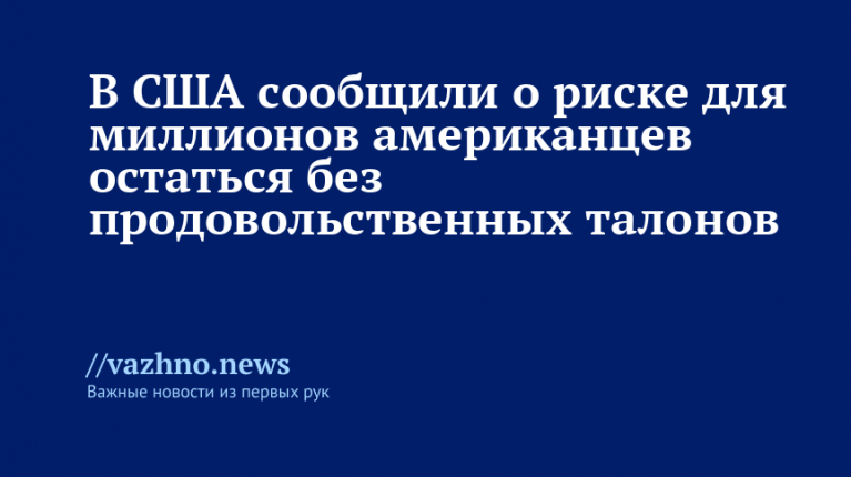 Согласно информации ведомства, финансовые ресурсы программы продовольственной поддержки SNAP могут исчерпаться примерно через две недели. Министр сельского хозяйства Брук Роллинс заявила, что последствия приостановки финансирования будут крайне серьезными.