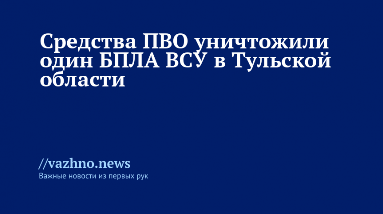 ПВО России сбили украинский дрон в Тульской области без ущерба для жителей и инфраструктуры