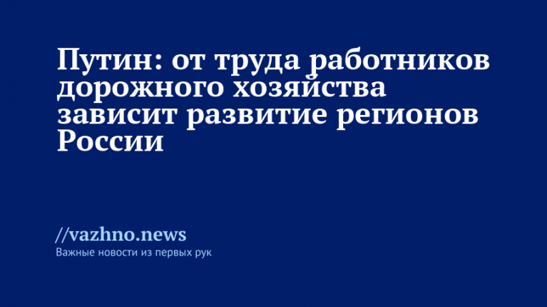 Путин отметил важность труда дорожников для развития регионов и качества жизни в России