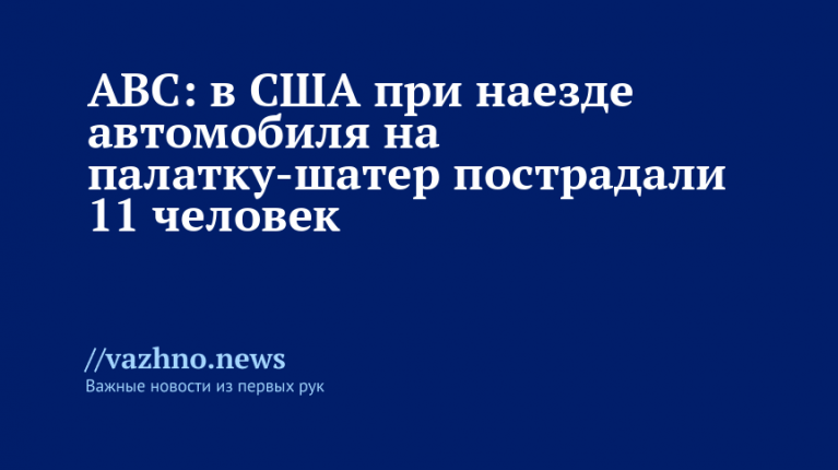 В городе Блэйденсбург в США произошло ДТП, в результате которого автомобиль столкнулся с палаткой-шатром, повредив 11 человек, в том числе младенца и восемь несовершеннолетних. Об этом 19 октября сообщил телеканал ABC.