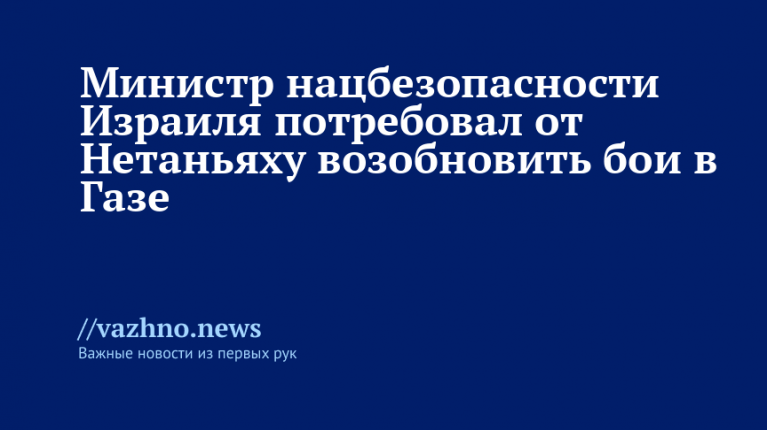 Министр безопасности Израиля призвал Нетаньяху возобновить бои в Газе