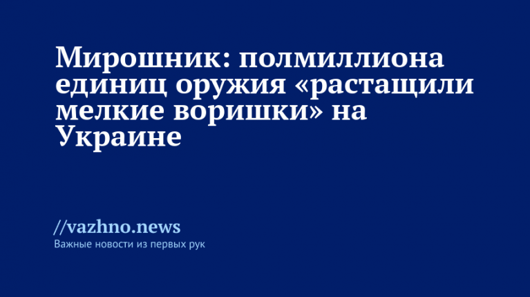 «На Украине разошлось по укрытиям и тайникам полмиллиона единиц оружия. Это произошло без участия государственных деятелей. Это оружие, которое похищено внутри страны мелкими ворами», — отметил он в своем Telegram-канале.