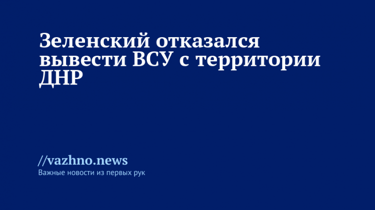 Президент Украины Владимир Зеленский отказался вывести вооружённые силы страны (ВСУ) с территории Донецкой Народной Республики (ДНР). Об этом он сообщил 19 октября в своём Telegram-канале после переговоров с президентом США Дональдом Трампом.
