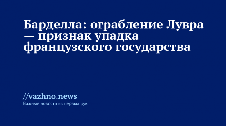 Музей Лувр в Париже является одним из главных символов Франции, поэтому его ограбление рассматривается как унижение для страны и показатель её упадка. Об этом 19 октября заявил лидер оппозиционной французской партии «Национальное объединение» Жордан Барделла.