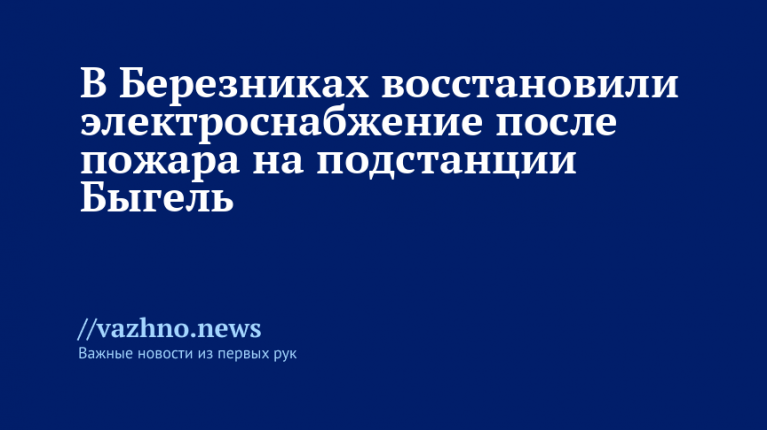 В городе Березники Пермского края электроснабжение жилых домов восстановлено после возгорания на электрической подстанции, а водонасосные станции начинают работать в обычном режиме. Об этом 19 октября сообщил глава муниципалитета Алексей Казаченко.