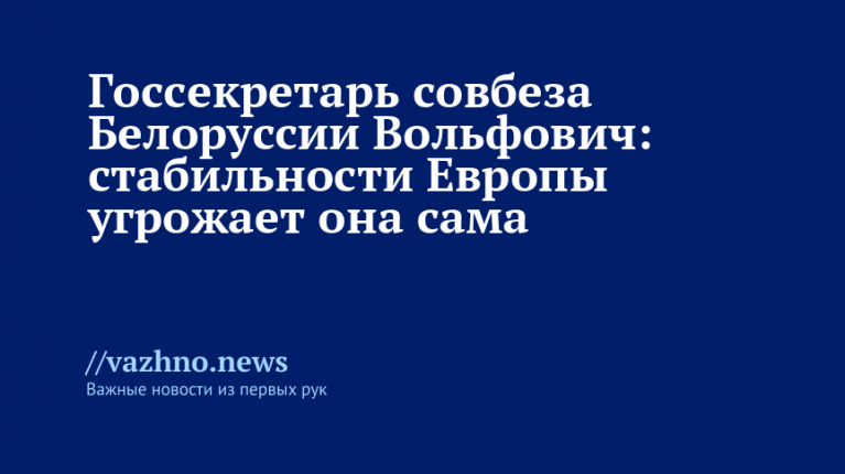 Опасность для европейских государств представляют не Белоруссия или Россия, а они сами создают угрозы для себя. Такое мнение высказал Александр Вольфович, глава совета безопасности республики, 19 октября в интервью телеканалу «Первый информационный».