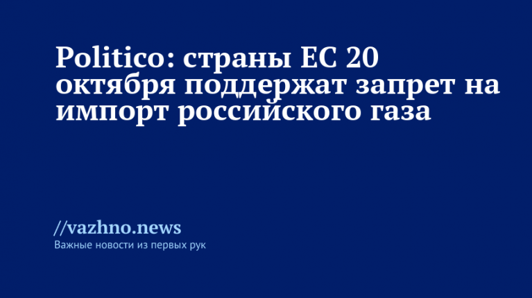 Еврокомиссия рассчитывает, что в понедельник страны Европейского Союза примут решение о запрете закупок российского газа, включая сжиженный природный газ (СПГ), начиная с 2027 года. Об этом 20 октября написала газета Politico.