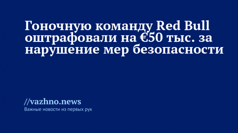 Команда Oracle Red Bull Racing была оштрафована на сумму в €50 тысяч за нарушения правил безопасности во время проведения Гран-при в США. Об этом 20 октября проинформировала пресс-служба Международной автомобильной федерации (FIA).
