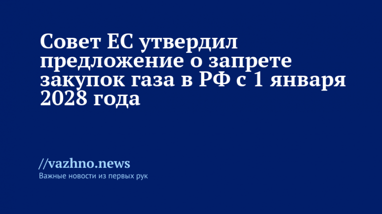 «Совет ЕС утвердил свою позицию для переговоров по проекту постановления об отказе от поставок российского природного газа. Решение предусматривает запрет на импорт как трубопроводного, так и сжиженного газа из России, который будет вводиться постепенно, с полным запретом, начиная с 1 января 2028 года», — отмечается в заявлении.