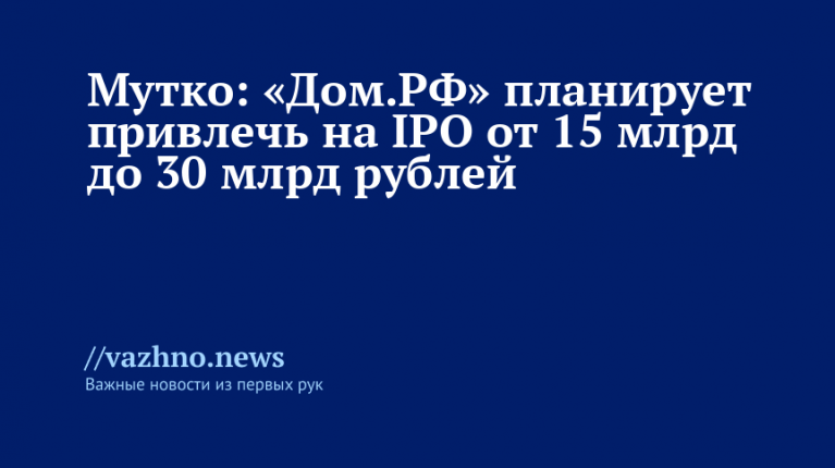 Компания «Дом.РФ» собирается привлечь от 15 до 30 млрд рублей во время первичного размещения акций на бирже (IPO), выводя на рынок около 10% своих акций. Об этом 20 октября сообщил руководитель компании Виталий Мутко на встрече с президентом России Владимиром Путиным в Кремле.