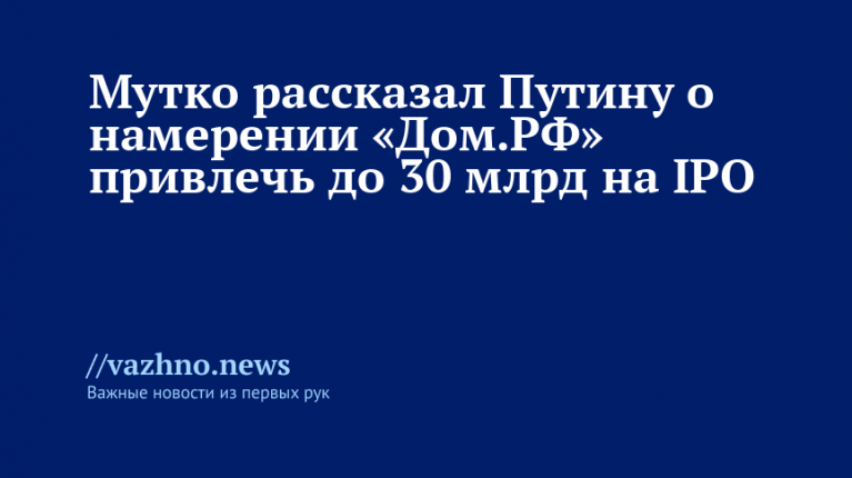 Мутко сообщил Путину, что «Дом.РФ» планирует привлечь до 30 млрд на IPO
