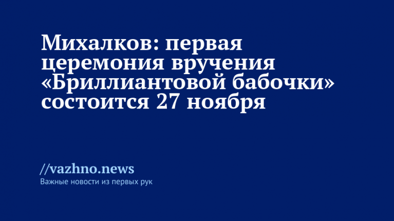 Народный артист России и председатель Союза кинематографистов РФ Никита Михалков 20 октября объявил, что первая церемония вручения Открытой Евразийской кинопремии «Бриллиантовая бабочка» пройдет 27 ноября в пространстве «Мастерская «12».