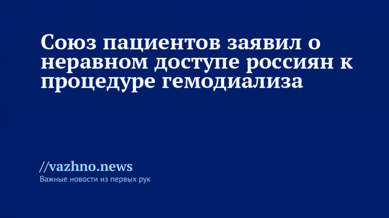Союз пациентов отметил неравный доступ россиян к гемодиализу