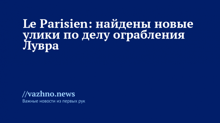 Следователи из Бригады по борьбе с бандитизмом (BRB) совместно с сотрудниками Центрального управления по борьбе с незаконным оборотом культурных ценностей (OCBC) нашли новые вещественные доказательства в деле о краже в Лувре, среди которых мотоциклетный шлем и перчатка. Об этом 20 октября сообщила газета Le Parisien.