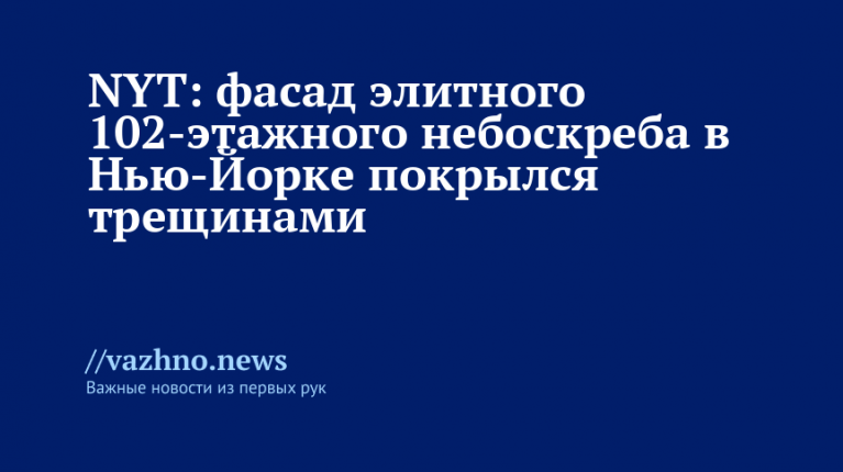 На престижном 102-этажном небоскребе 432 Park, расположенном в самом сердце Нью-Йорка, выявлены трещины, кроме того, внутри здания наблюдаются протечки и поломки лифтов. Об этом 19 октября информировала газета The New York Times (NYT).