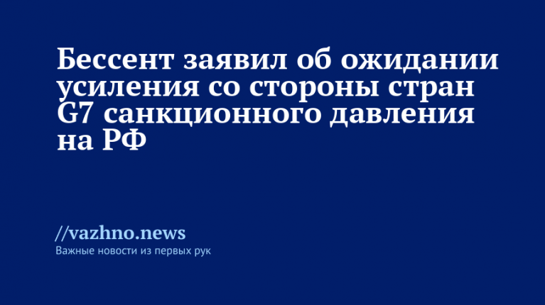 Вашингтон рассчитывает, что государства «Большой семерки» (G7), включая Канаду и Великобританию, усилят экономическое давление на Россию. Об этом сообщил министр финансов США Скотт Бессент.