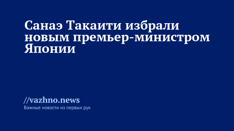 Санаэ Такаити стала новым премьер-министром Японии, впервые в истории страны заняв этот пост в качестве женщины. Об этом событии 21 октября сообщили News TV Asahi.