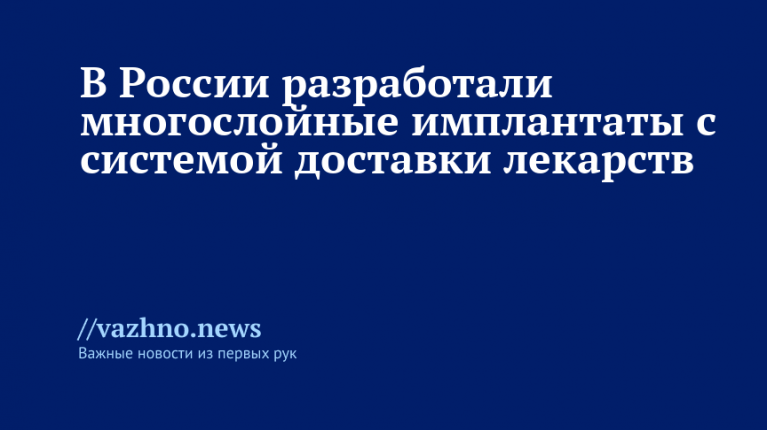Ученые из Института физики прочности и материаловедения СО РАН, Института химии твердого тела и механохимии СО РАН, а также Института ядерной физики имени Г.И. Будкера СО РАН разработали прототип умного имплантата, способного постепенно высвобождать лекарственные средства — антибиотики или противоопухолевые препараты — непосредственно в зоне поражения.