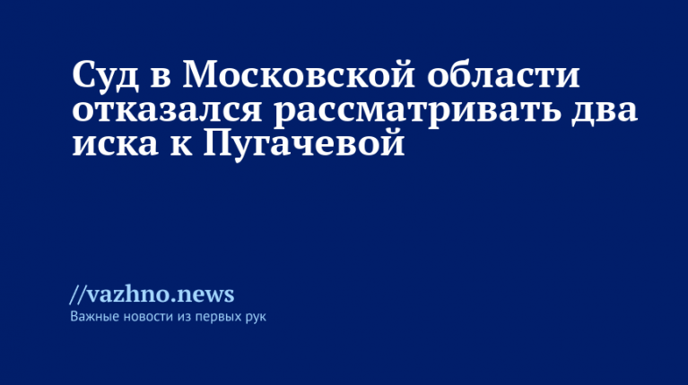 Одинцовский суд Московской области отказался принимать к рассмотрению иски Виталия Бородина, руководителя Федерального проекта по безопасности и борьбе с коррупцией (ФПБК), а также юриста и ветерана Афганистана Александра Трещева к певице Алле Пугачевой. Об этом сообщается в официальных документах суда.