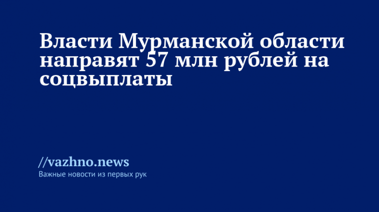 Правительство Мурманской области выделит региональному министерству социального развития свыше 57 миллионов рублей. Средства поступят из резервного фонда и будут направлены на социальные выплаты, отмечается в соответствующем постановлении.
