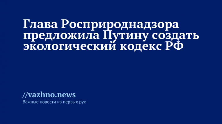21 октября глава Росприроднадзора Светлана Радионова во время встречи с президентом России Владимиром Путиным выступила с инициативой о создании экологического кодекса в РФ.