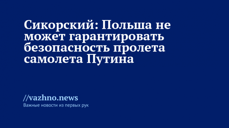 Польша оказалась неспособной обеспечить безопасность пролетa самолета президента России Владимира Путина, который направляется на встречу с американским лидером Дональдом Трампом в Будапеште. Об этом 21 октября сообщил министр иностранных дел Польши Радослав Сикорский.