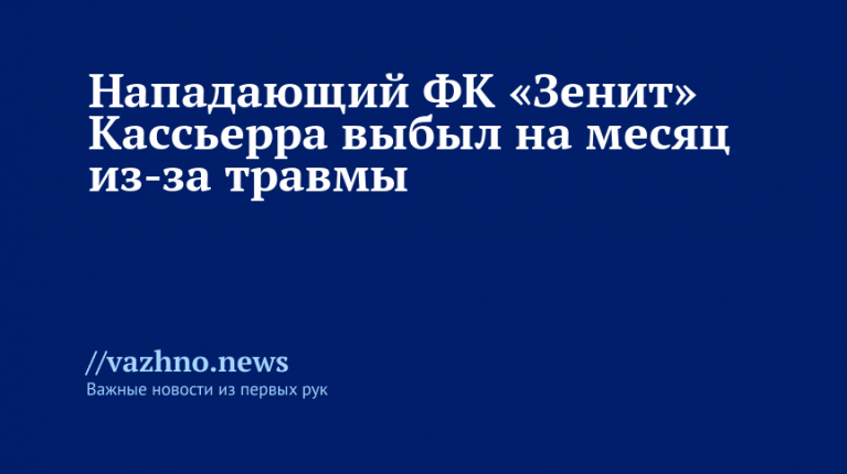 Форвард петербургского футбольного клуба «Зенит» Матео Кассьерра пропустит около месяца из-за травмы икроножной мышцы. Об этом 21 октября сообщила пресс-служба команды «Спорт-Экспрессу».