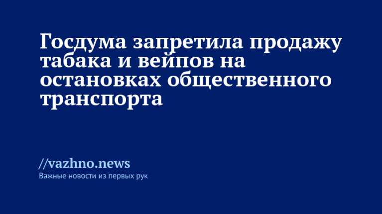 Государственная дума одобрила в первом чтении проект закона, направленный на запрет реализации табачной продукции и товаров с никотином на остановках общественного транспорта. Эта инициатива призвана сократить доступ молодежи к таким изделиям и минимизировать риск пассивного курения. В то же время депутаты и регулирующие органы продолжают разработку мер по полному запрету продажи вейпов и усилению ответственности за их оборот. Детали — в материале «Известий».