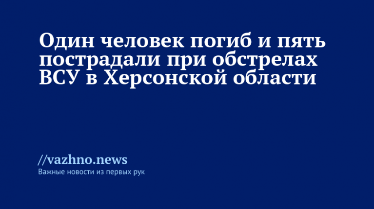 В течение прошедших суток на территории Херсонской области, подверженной обстрелам со стороны Вооруженных сил Украины (ВСУ), потерпела гибель женщина, кроме того, травмы получили пять человек. Информацию об этом 21 октября опубликовал губернатор Владимир Сальдо.