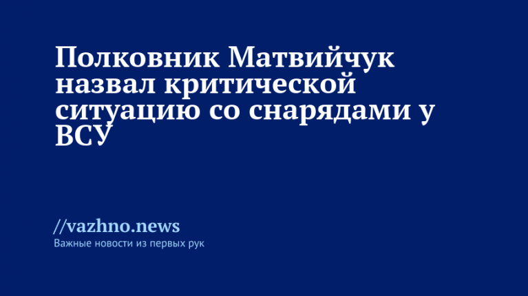 Отставной полковник и военный специалист Анатолий Матвийчук сообщил о критической ситуации с обеспечением боеприпасами для Вооруженных сил Украины (ВСУ).