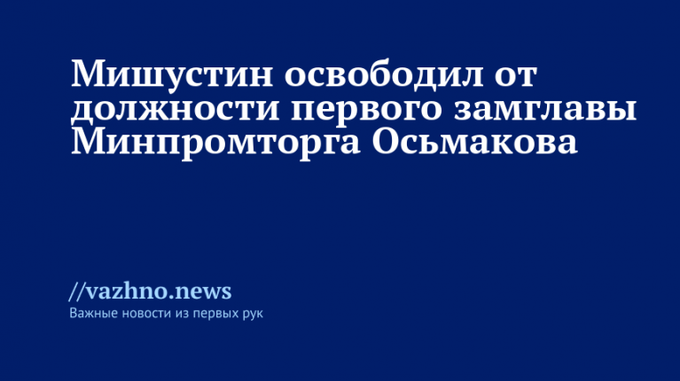 Премьер-министр России Михаил Мишустин освободил Василия Осьмакова от поста первого заместителя министра промышленности и торговли РФ. Соответствующий указ был опубликован 21 октября на официальном интернет-портале правовой информации.