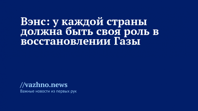 Вице-президент США Джей Ди Вэнс выступил с заявлением, что все страны мира обязаны участвовать в восстановлении Газы после войны. Об этом он рассказал 21 октября на пресс-конференции в Кирьят-Гате, расположенном в Израиле.