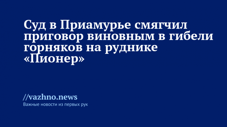 «Амурский областной суд отменил прежний приговор управляющему директору и главному инженеру рудника «Пионер» и назначил новый — 4,5 года колонии общего режима, а также лишение права занимать руководящие должности на опасных производствах сроком на 2,5 года», — информируют в пресс-службе судов.