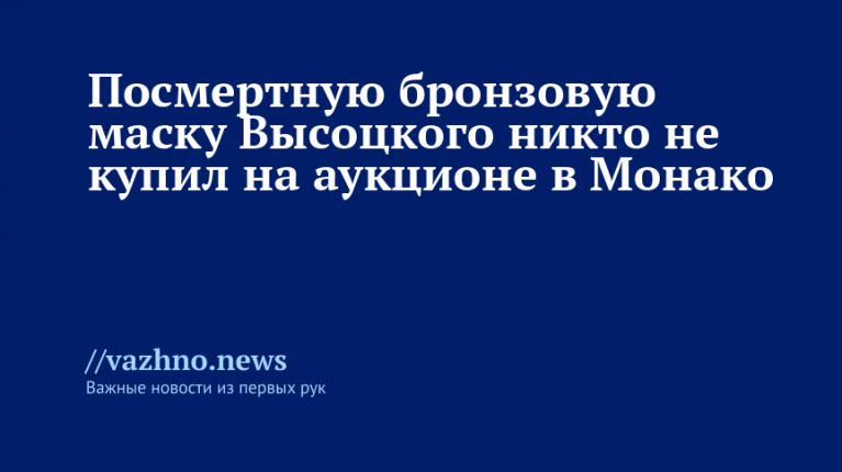 Посмертная бронзовая маска известного автора-исполнителя Владимира Высоцкого, изготовленная в 1980 году, осталась непроданной на аукционе Hermitage Fine Art, состоявшемся 21 октября в отеле «Метрополь» в Монако.