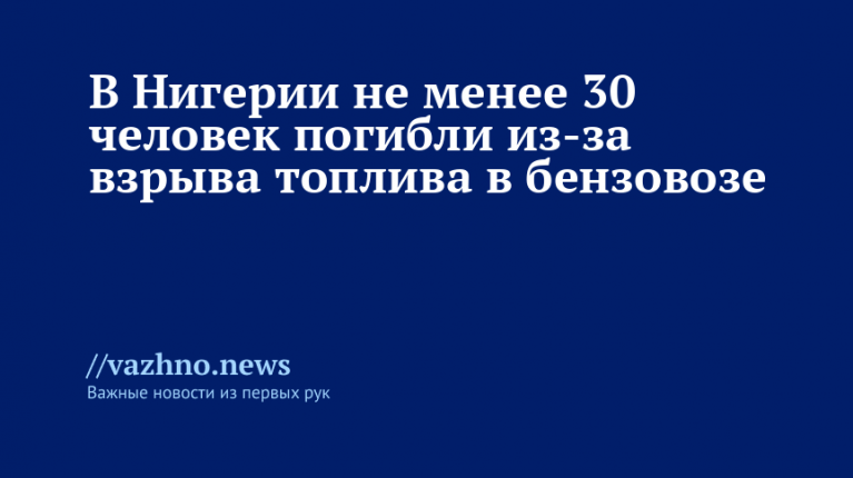 В прошлом году были зафиксированы минимум 140 погибших в результате взрыва бензовоза в Нигерии. Тогда сообщалось, что водитель бензовоза потерял контроль над управлением, из-за чего цистерна перевернулась и топливо вытекло в дренажную канаву, где начался пожар.