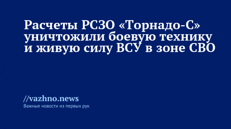 Расчеты реактивных систем залпового огня (РСЗО) «Торнадо-С» из состава войсковой группировки «Север» уничтожили скопления боевой техники и личного состава подразделений Вооруженных сил Украины (ВСУ) в зоне специальной военной операции (СВО) на харьковском направлении. Об этом сообщило Министерство обороны РФ 22 октября.