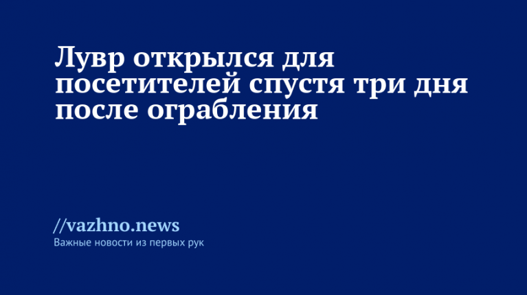 В сообщении отмечается: «Лувр снова начал работу в среду, спустя три дня после кражи королевских драгоценностей на сумму 88 миллионов евро в ходе дерзкого ограбления знаменитого во всем мире музея».