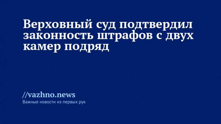 22 октября Верховный суд России подтвердил легитимность назначенных повторных штрафов за превышение скорости, даже если камеры установлены на расстоянии в несколько сотен метров друг от друга.