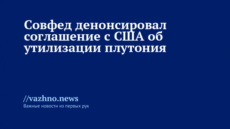 На пленарном заседании Совета Федерации России было объявлено о денонсации межправительственного соглашения с США, касающегося утилизации оружейного плутония, который более не применяется в оборонных целях.