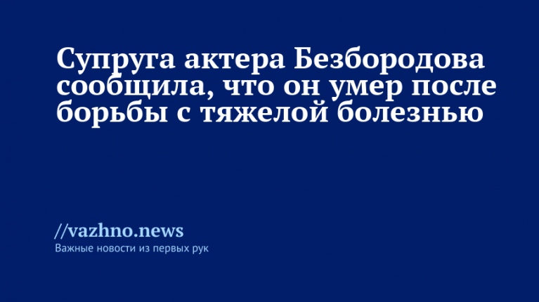 Супруга отметила, что Безбородов «до последнего улыбался и старался шутить». Сообщается, что актер умер 24 сентября.