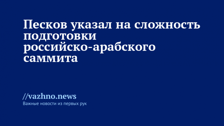 Подготовка российско-арабского саммита требует серьезных усилий и согласования расписаний. Об этом 22 октября заявил официальный представитель Кремля Дмитрий Песков.