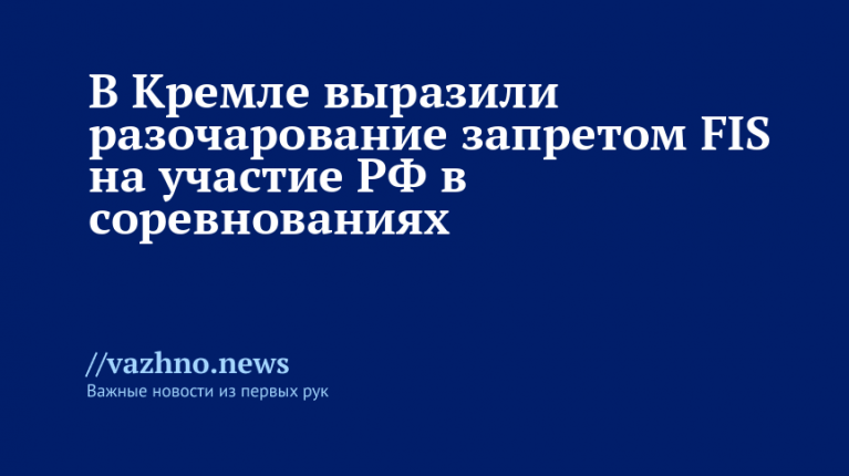 Россия выразила огорчение из-за запрета Международной федерации лыжного спорта и сноуборда (FIS) на участие российских лыжников в Олимпийских играх. Об этом 22 октября заявил официальный представитель Кремля Дмитрий Песков.